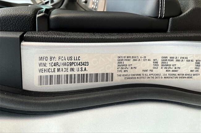 - VIN : 1C4RJHAG9PC643423