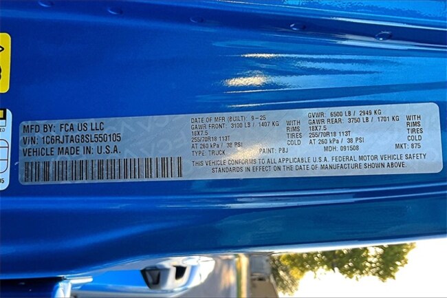 - VIN : 1C6RJTAG8SL550105