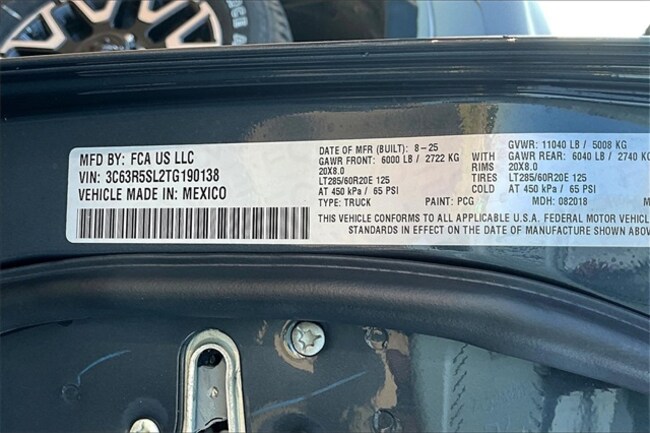 - VIN : 3C63R5SL2TG190138