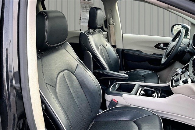 Inside, the Pacifica Limited surrounds you with upscale materials and thoughtful design. The cabin features Nappa leather-trimmed bucket seats, heated and ventilated front seats, heated second-row seating, a heated steering wheel, and power-adjustable front seats with memory settings. Chryslers versatile Stow n Go seating allows the second and third rows to fold flat into the floor, giving you exceptional cargo flexibility when needed. Convenience is elevated with a wireless charging pad, integrated Stow n Vac vacuum, and a dual-pane panoramic sunroof that brightens the entire interior.